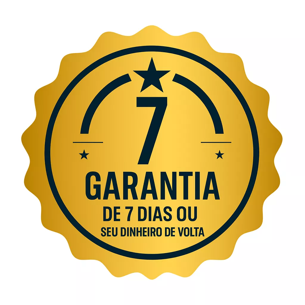 Você tem garantia de 7 dias! Se por qualquer motivo não se sentir satisfeita, devolvemos seu dinheiro sem burocracia.